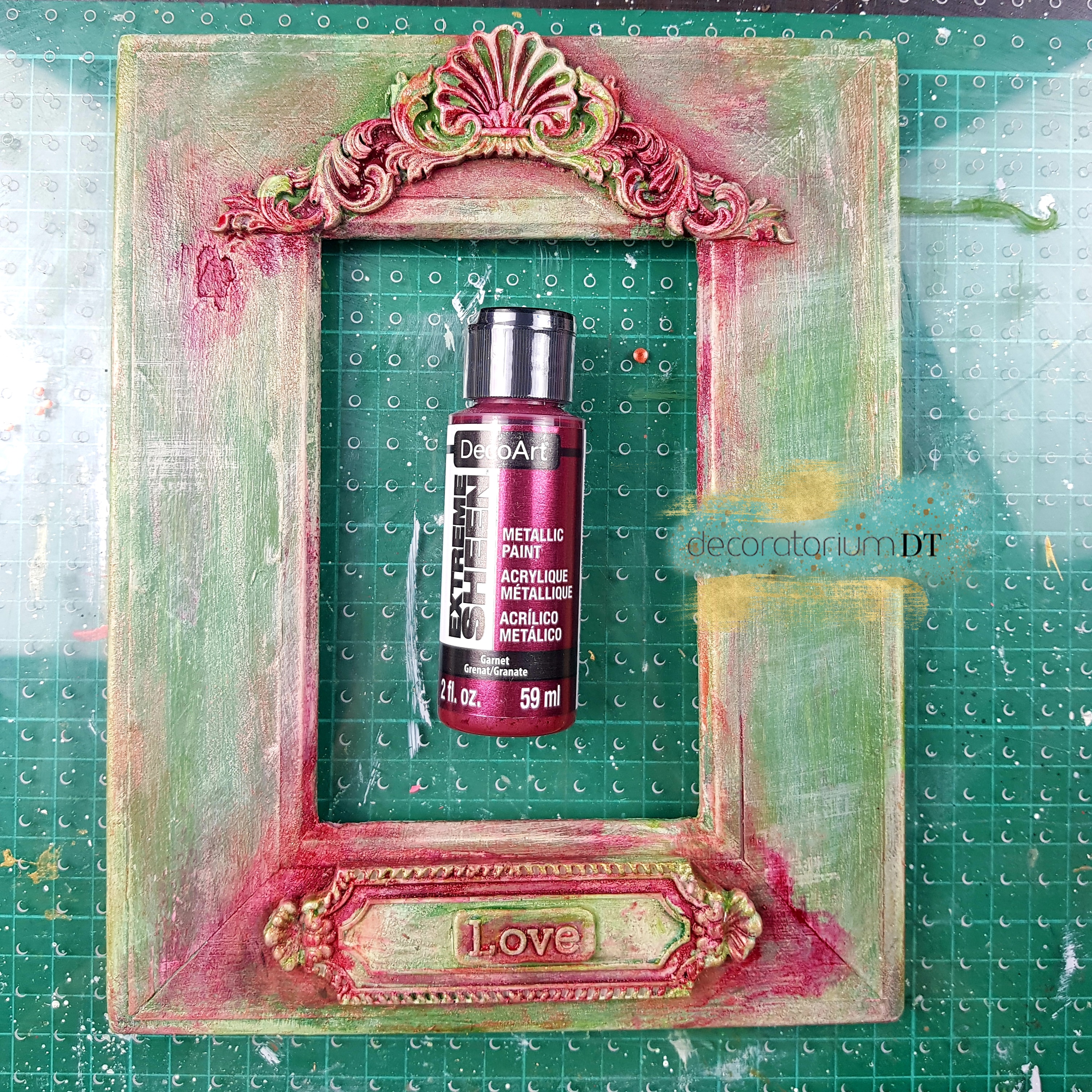 Wykorzystałam gipsowo-drewnianą ramkę na zdjęcie, którą oczywiście na samym początku pokryłam szarym gesso.
